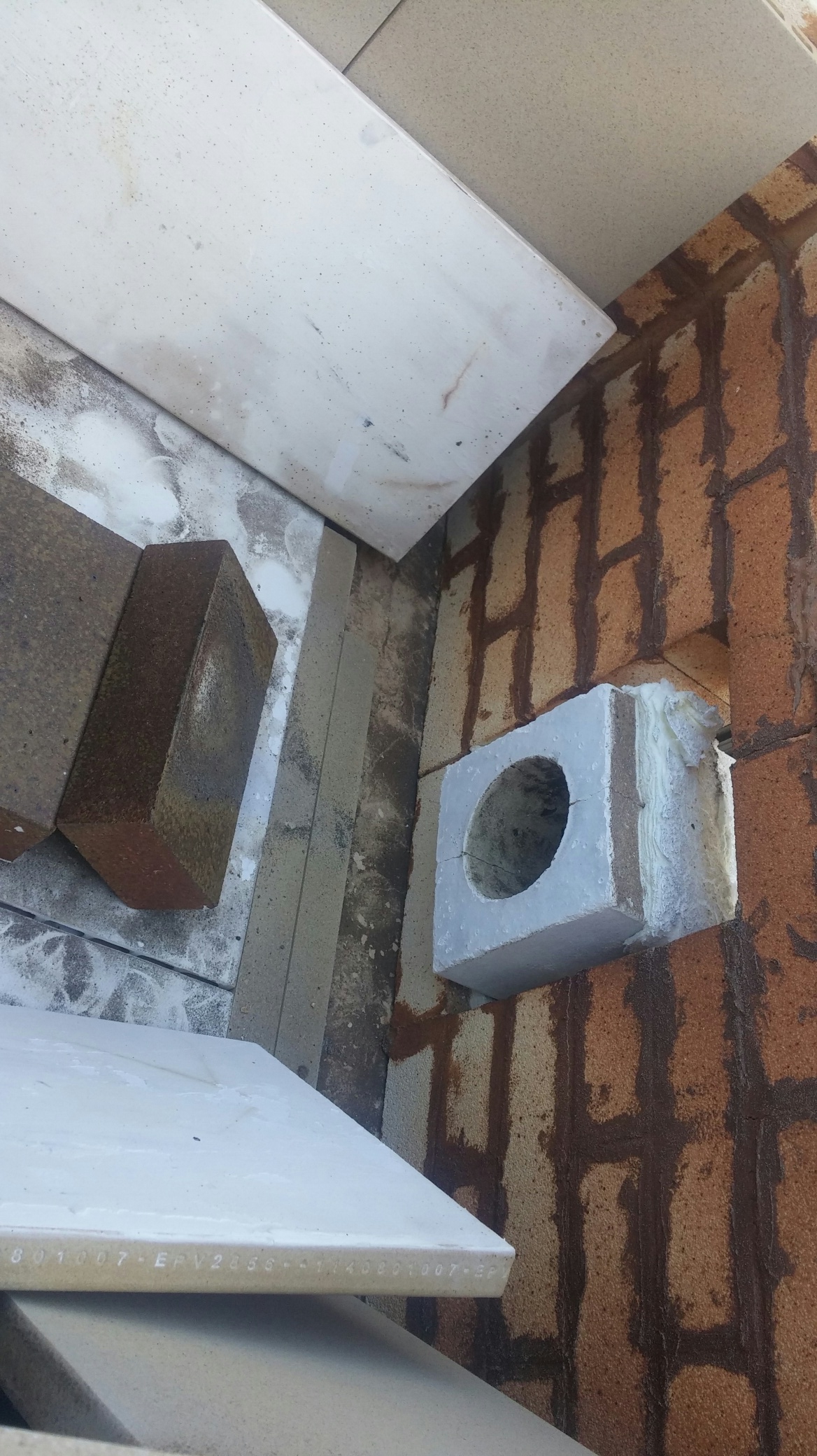 Finally here’s a view from inside the kiln looking at the inside of the front wall – you can see the refractory nozzle of the burner.