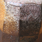 In this series of slip tests, soda ash was mixed with hot water to create a liquid solution of soda ash. This solution was poured into a weed sprayer and injected through 24 holes in the sides of the kiln. This takes about 10 minutes and requires 3 pounds of soda ash for this kiln. A steel brake line tube can be fitted to the brass tube that comes with the weed sprayer. A compression fitting is used to attach the two sections of tubing and the tip of the steel tube that enters the kiln is crimped to create as much of a spray as possible. The steel tube is inserted into the kiln to about half way into the kiln. The solution is then introduced into the kiln by squeezing the trigger of the weed sprayer. With a count of 5, I slowly remove the steel tube to disribute the solution over the kiln shelf. After the solution is introduced throughout all 24 soda ports, the kiln can be placed into a heavy reduction for 20 minutes for the purposes of carbon trapping the soda. When cone 10 is starting to bend, I put the kiln in neutral for the remainder of the firing. Any residual soda solution must be rinsed out for it solidifies upon cooling.